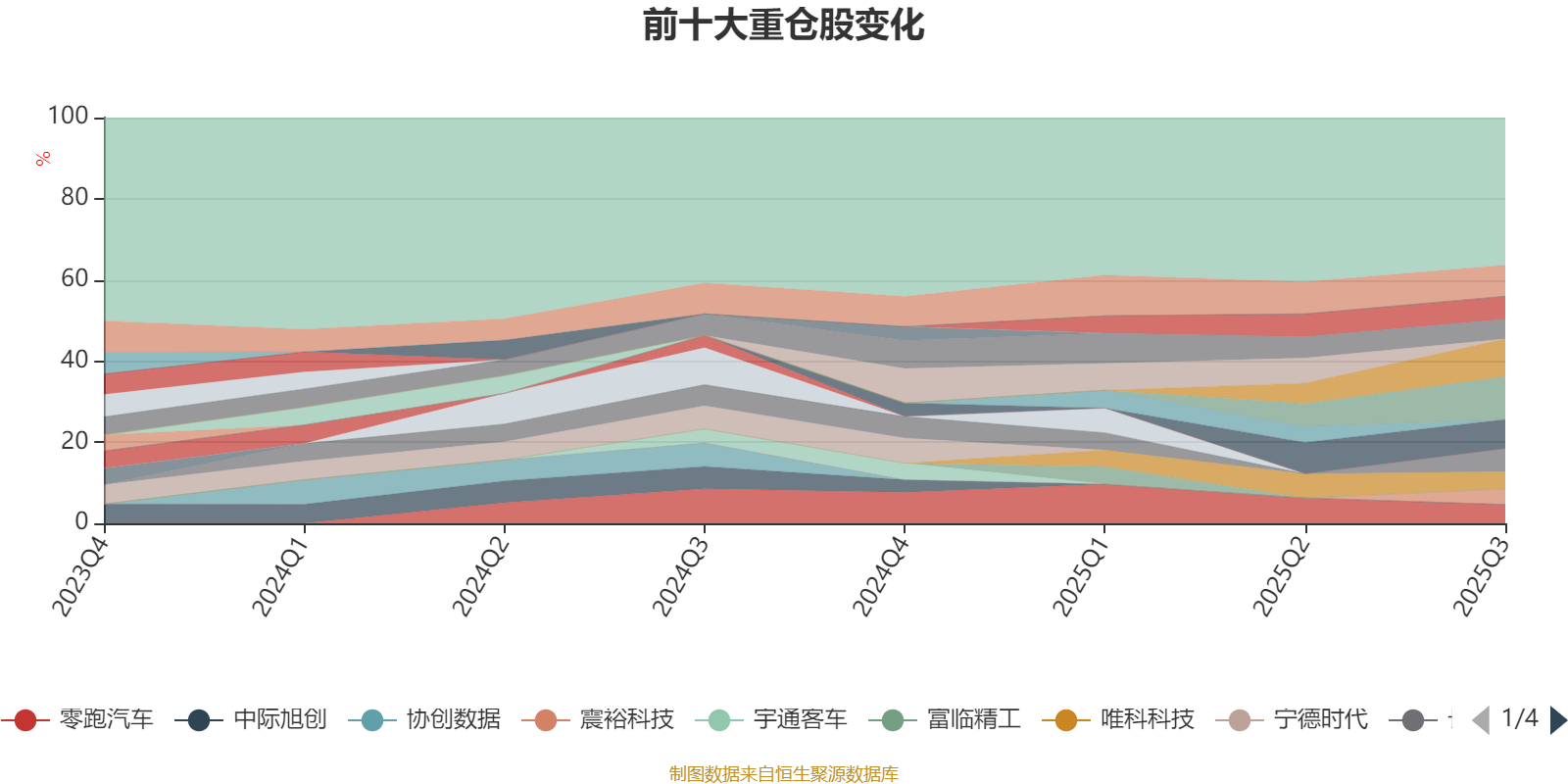 截至2025年三季度末,基金十大重仓股分别是浙江荣泰、江淮汽车、小鹏汽车-W、小米集团-W、长城汽车、理想汽车-W、拓普集团、零跑汽车、唯科科技、震裕科技。