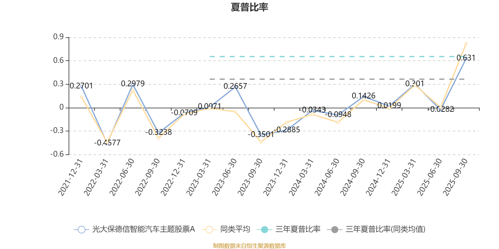 截至9月30日,基金近三年夏普比率为0.6542,位于同类可比基金3/29。