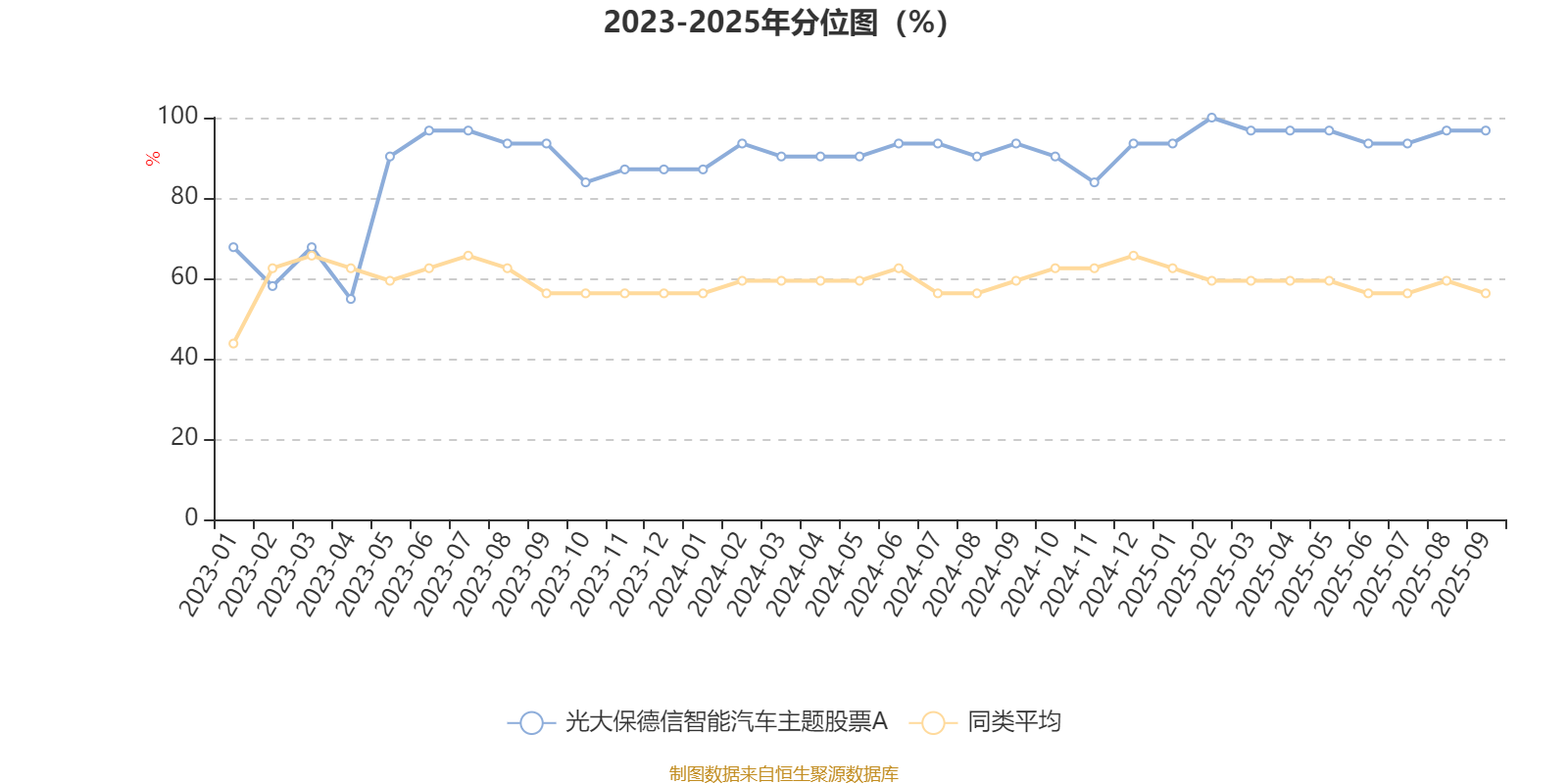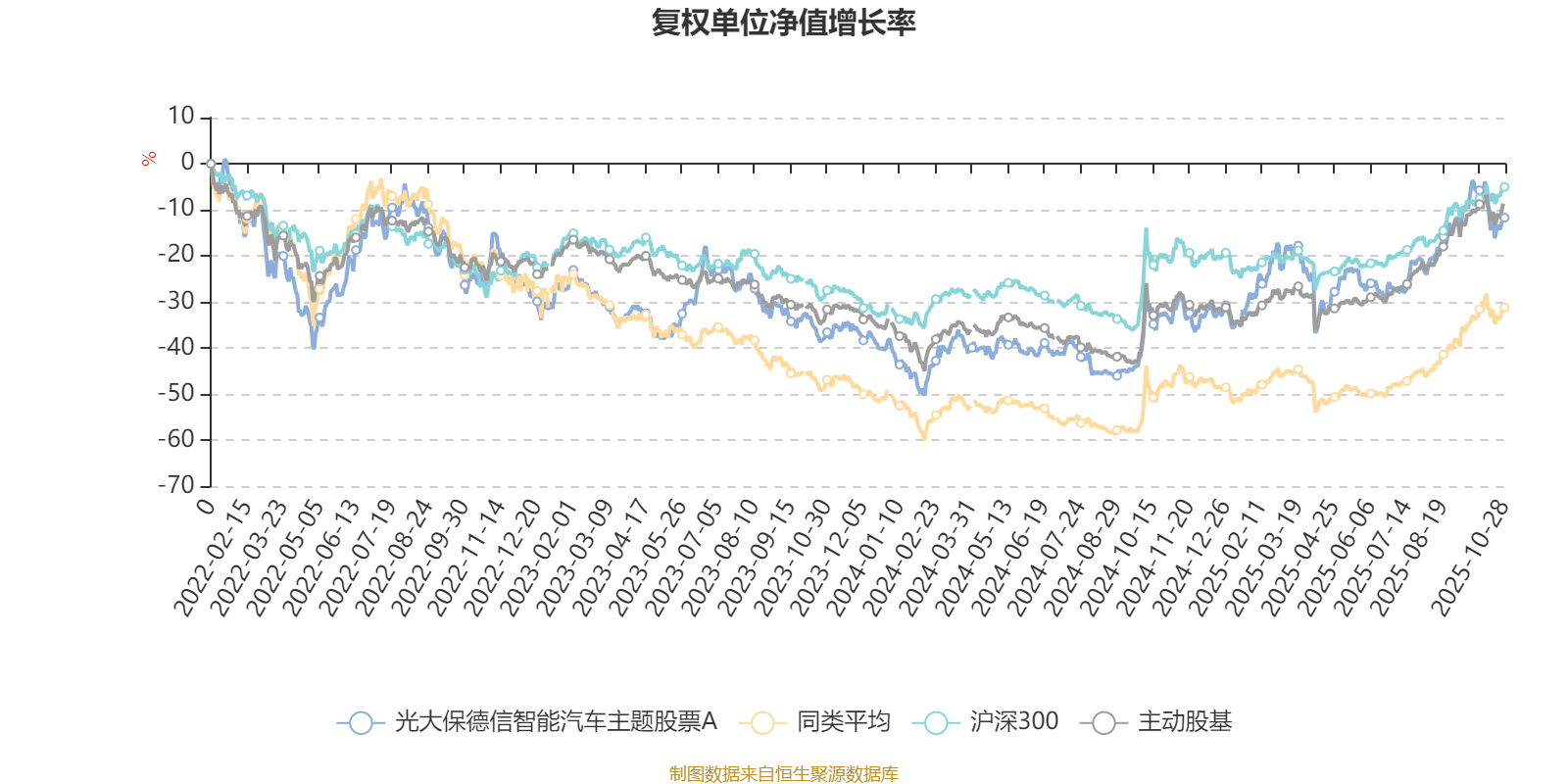 截至10月28日,光大保德信智能汽车主题股票A近三个月复权单位净值增长率为11.41%,位于同类可比基金34/39;近半年复权单位净值增长率为23.21%,位于同类可比基金36/39;近一年复权单位净值增长率为30.86%,位于同类可比基金20/38;近三年复权单位净值增长率为21.40%,位于同类可比基金3/29。