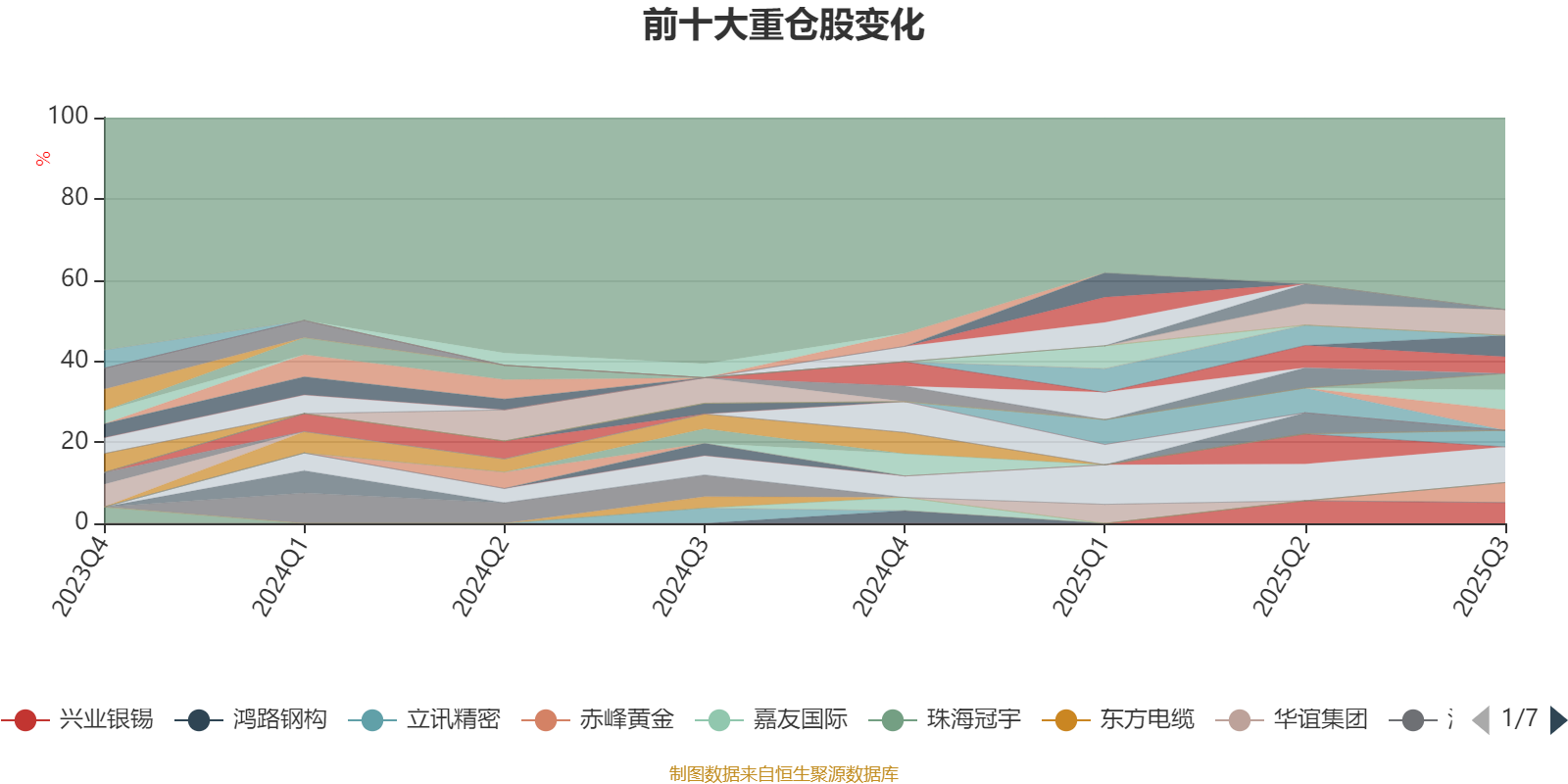 截至2025年三季度末,基金十大重仓股分别是紫金矿业、山东黄金、株冶集团、兴业银锡、招商轮船、华锡有色、赤峰黄金、巨化股份、中船特气、东方钽业。