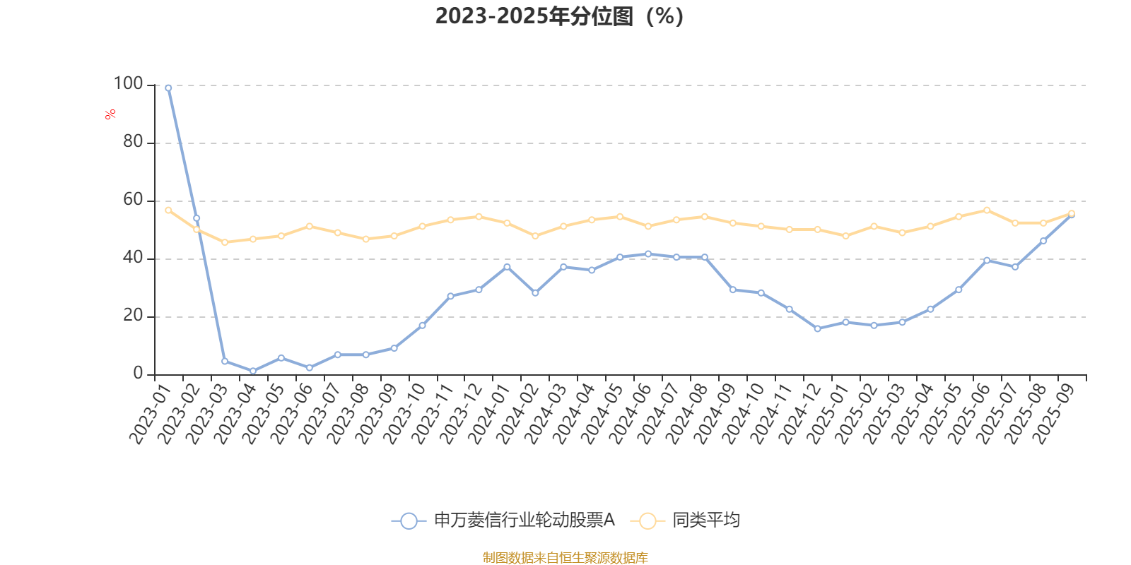 截至10月28日,申万菱信行业轮动股票A近三个月复权单位净值增长率为22.05%,位于同类可比基金33/121;近半年复权单位净值增长率为43.15%,位于同类可比基金24/121;近一年复权单位净值增长率为42.48%,位于同类可比基金20/115;近三年复权单位净值增长率为22.02%,位于同类可比基金45/87。