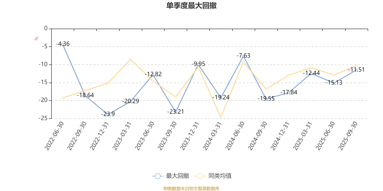 截至10月27日,基金近三年最大回撤为54.37%,同类可比基金排名47/51。单季度最大回撤出现在2022年四季度,为23.9%。
