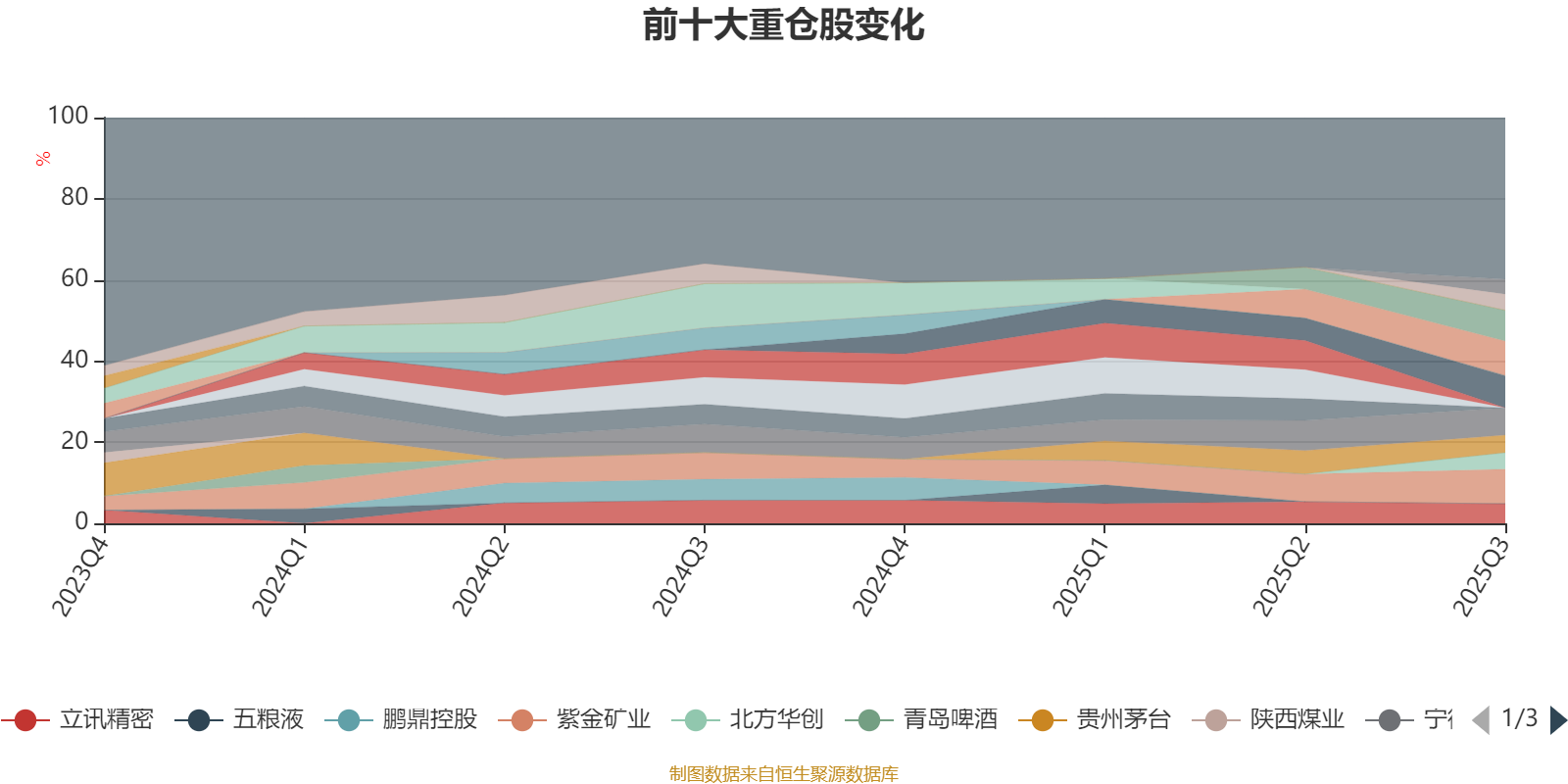截至2025年三季度末,基金十大重仓股分别是恒瑞医药、紫金矿业、徐工机械、中国平安、宁德时代、立讯精密、贵州茅台、北方华创、华鲁恒升、兆易创新。