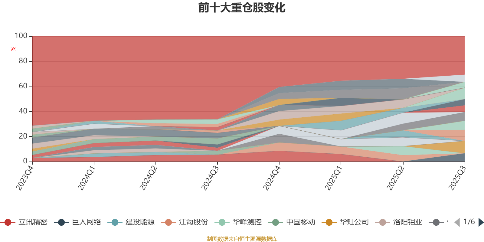 截至2025年三季度末,基金十大重仓股分别是华虹公司、华海清科、中微公司、精智达、杰普特、巨人网络、晶合集成、长川科技、寒武纪、新易盛。