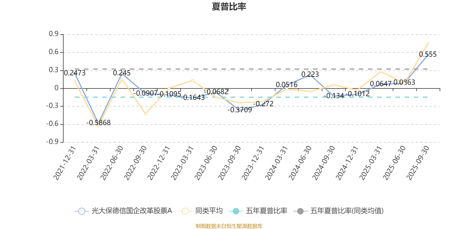截至9月30日,基金近三年夏普比率为0.0875,位于同类可比基金142/156。