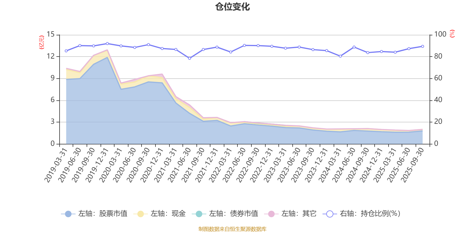 据定期报告数据统计,近三年平均股票仓位为86.36%,同类平均为88.27%。2019年末基金达到91.97%的最高仓位,2021年上半年末最低,为78.46%。