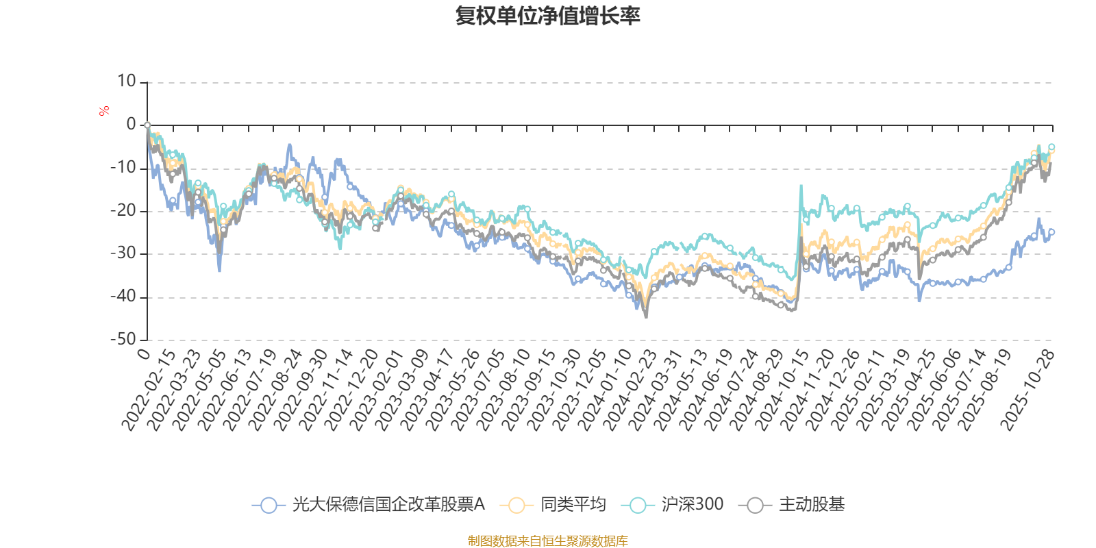 截至10月28日,光大保德信国企改革股票A近三个月复权单位净值增长率为13.39%,位于同类可比基金98/167;近半年复权单位净值增长率为19.01%,位于同类可比基金132/166;近一年复权单位净值增长率为12.69%,位于同类可比基金141/164;近三年复权单位净值增长率为-17.14%,位于同类可比基金150/156。