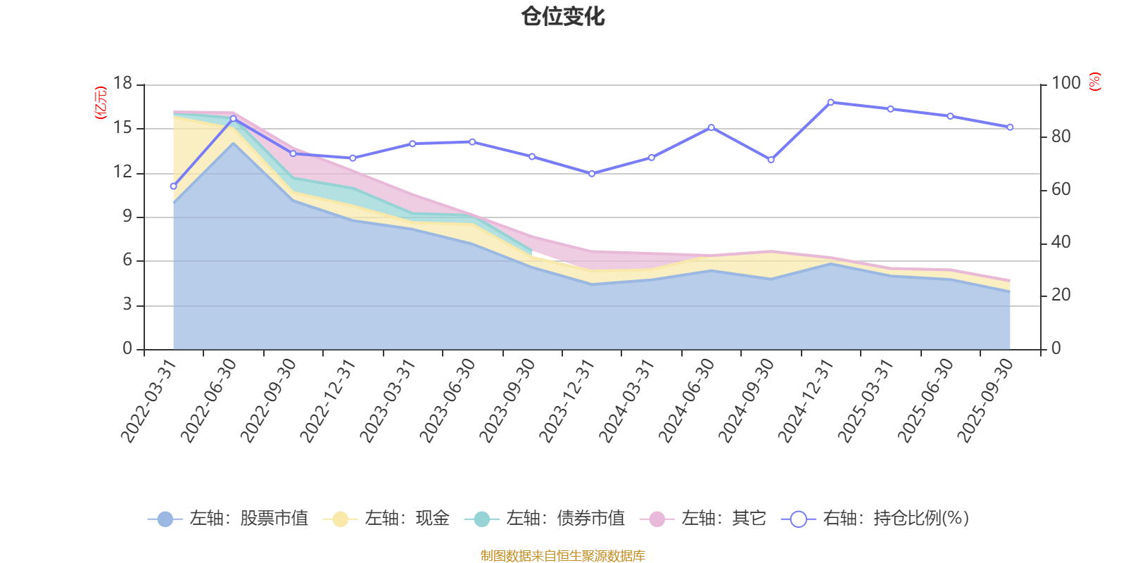 据定期报告数据统计,近三年平均股票仓位为79.25%,同类平均为85.66%。2024年末基金达到93.28%的最高仓位,2022年一季度末最低,为61.61%。