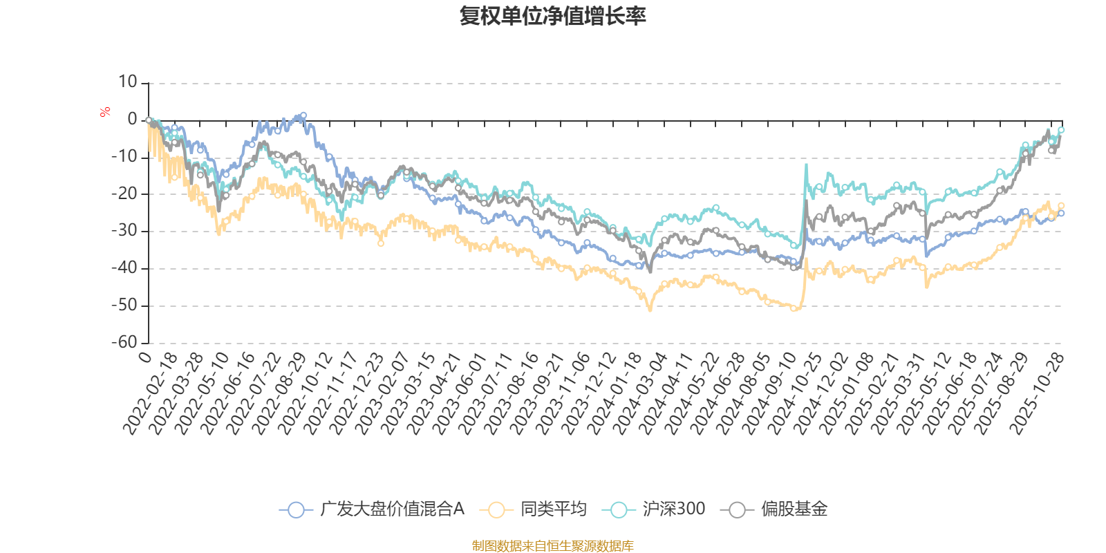 截至10月28日,广发大盘价值混合A近三个月复权单位净值增长率为1.98%,位于同类可比基金574/621;近半年复权单位净值增长率为12.53%,位于同类可比基金548/619;近一年复权单位净值增长率为11.54%,位于同类可比基金522/611;近三年复权单位净值增长率为-9.10%,位于同类可比基金470/518。