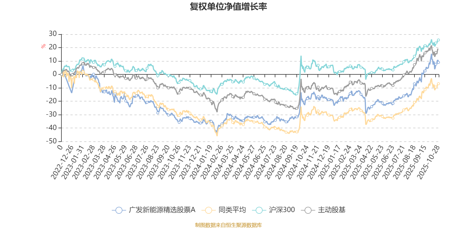 截至10月28日,广发新能源精选股票A近三个月复权单位净值增长率为28.02%,位于同类可比基金16/39;近半年复权单位净值增长率为40.63%,位于同类可比基金21/39;近一年复权单位净值增长率为30.96%,位于同类可比基金19/38。