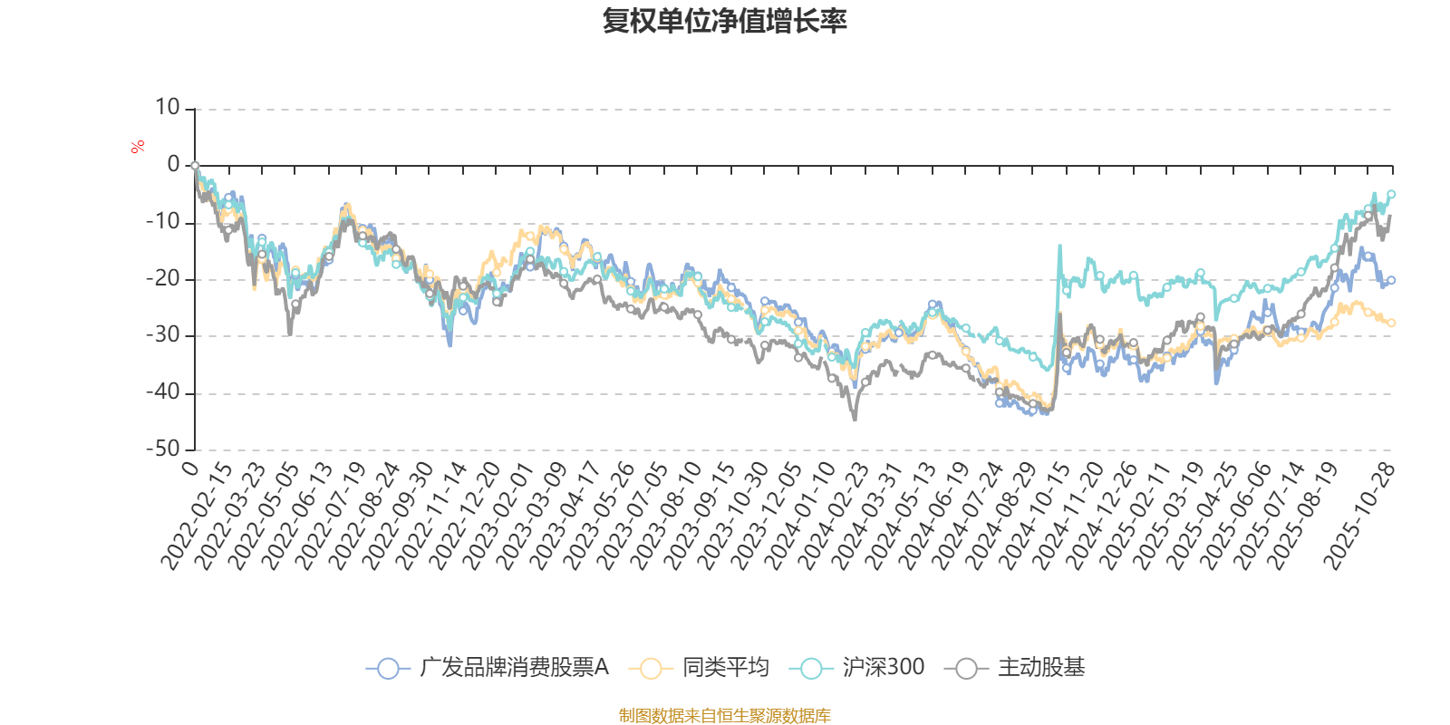 截至10月28日,广发品牌消费股票A近三个月复权单位净值增长率为10.28%,位于同类可比基金3/43;近半年复权单位净值增长率为19.49%,位于同类可比基金1/43;近一年复权单位净值增长率为19.16%,位于同类可比基金3/43;近三年复权单位净值增长率为15.91%,位于同类可比基金14/40。