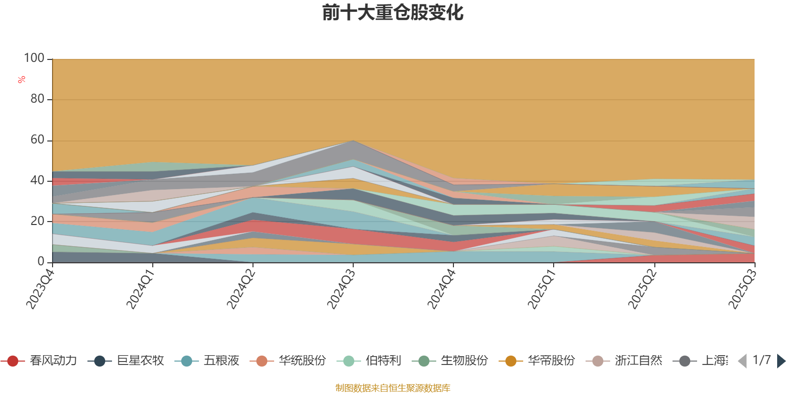 截至2025年三季度末,基金十大重仓股分别是恺英网络、新泉股份、春风动力、海容冷链、泸州老窖、完美世界、欢瑞世纪、江淮汽车、浙江荣泰、科沃斯。