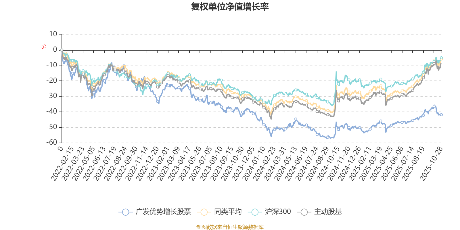 截至10月28日,广发优势增长股票近三个月复权单位净值增长率为4.49%,位于同类可比基金150/167;近半年复权单位净值增长率为12.67%,位于同类可比基金154/166;近一年复权单位净值增长率为13.58%,位于同类可比基金135/164;近三年复权单位净值增长率为-26.93%,位于同类可比基金154/156。