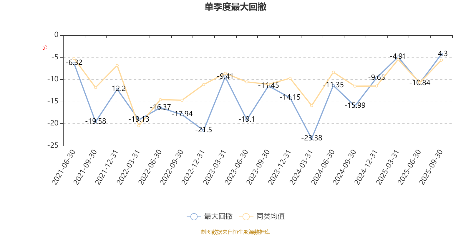 截至10月27日,基金近三年最大回撤为52.29%,同类可比基金排名150/156。单季度最大回撤出现在2024年一季度,为23.38%。