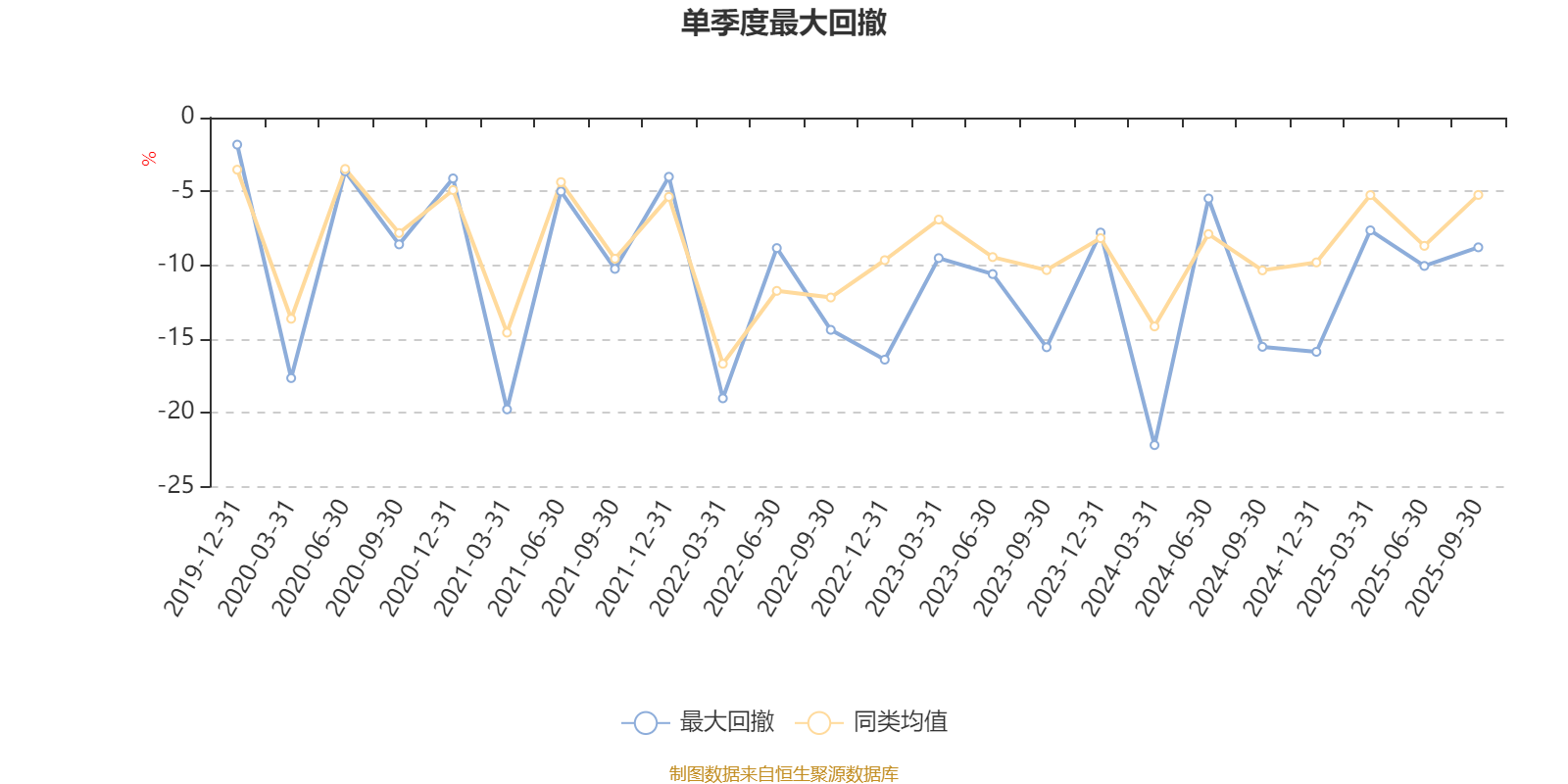 截至10月27日,基金近三年最大回撤为39.9%,同类可比基金排名905/1274。单季度最大回撤出现在2024年一季度,为22.19%。