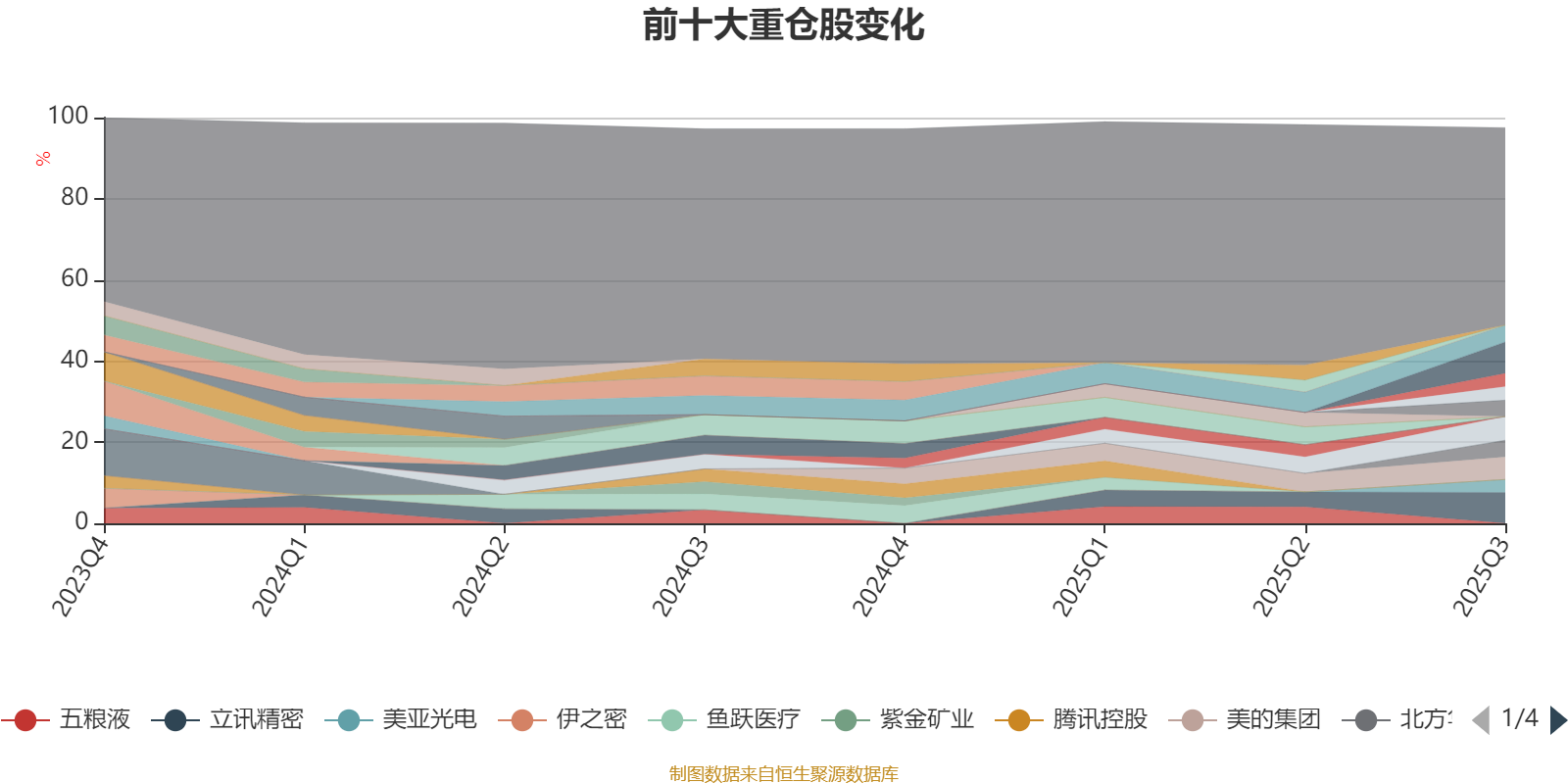 截至2025年三季度末,基金十大重仓股分别是阿里巴巴-W、立讯精密、中金黄金、美的集团、中通快递-W、北方华创、中芯国际、中金公司、中国平安、美亚光电。