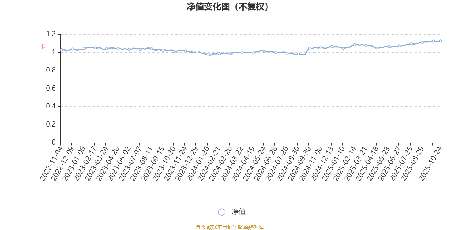 该基金属于偏债混合型基金。截至10月24日,单位净值为1.129元。基金经理是胡伟,目前管理的7只基金近一年均为正收益。其中,截至10月28日,东方红锦弘甄选两年持有混合近一年复权单位净值增长率最高,达12.57%;东方红益鑫纯债债券A最低,为3.27%。