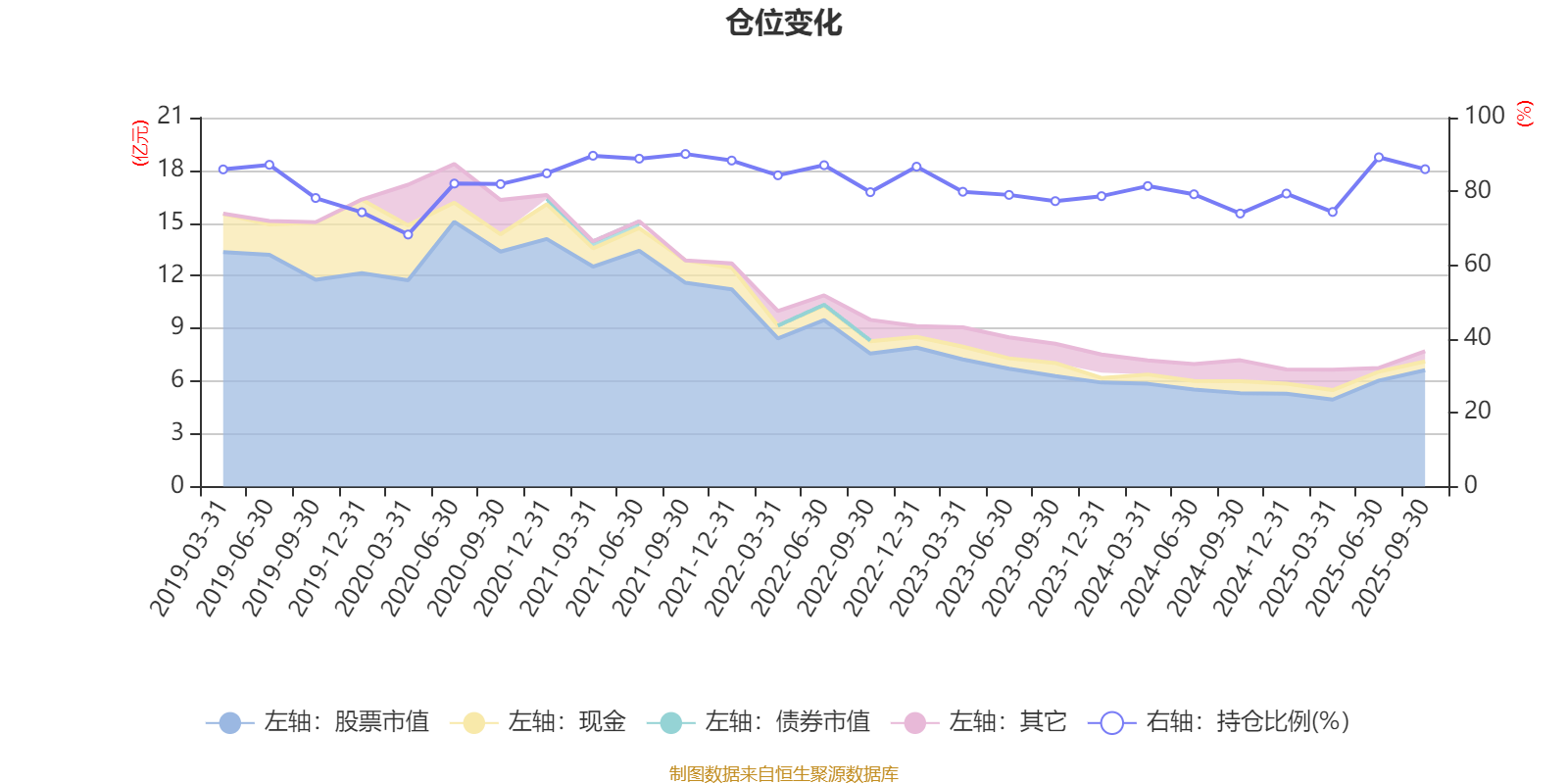 据定期报告数据统计,近三年平均股票仓位为80.46%,同类平均为85.96%。2021年三季度末基金达到90.14%的最高仓位,2020年一季度末最低,为68.31%。