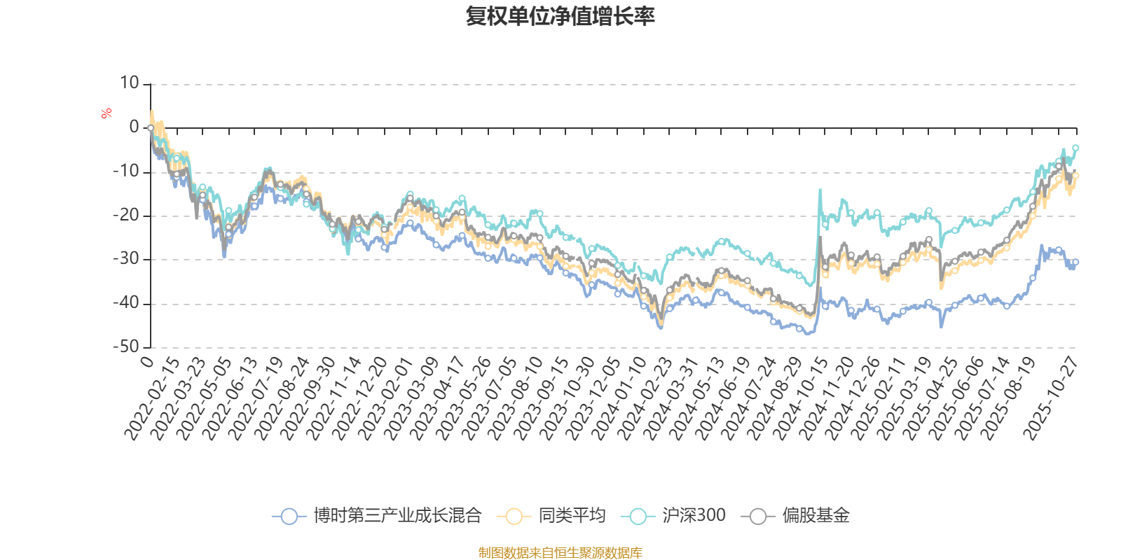 截至10月27日,博时第三产业成长混合近三个月复权单位净值增长率为12.91%,位于同类可比基金160/265;近半年复权单位净值增长率为16.53%,位于同类可比基金224/265;近一年复权单位净值增长率为15.24%,位于同类可比基金215/265;近三年复权单位净值增长率为-7.28%,位于同类可比基金229/253。