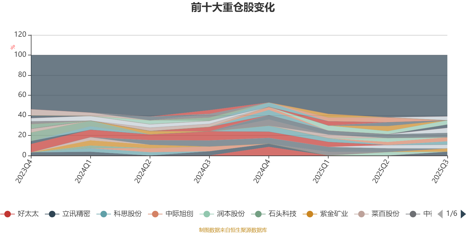 截至2025年三季度末,基金十大重仓股分别是渝农商行、新乳业、乖宝宠物、小商品城、安克创新、立讯精密、迪哲医药、宁德时代、百济神州、紫金矿业。