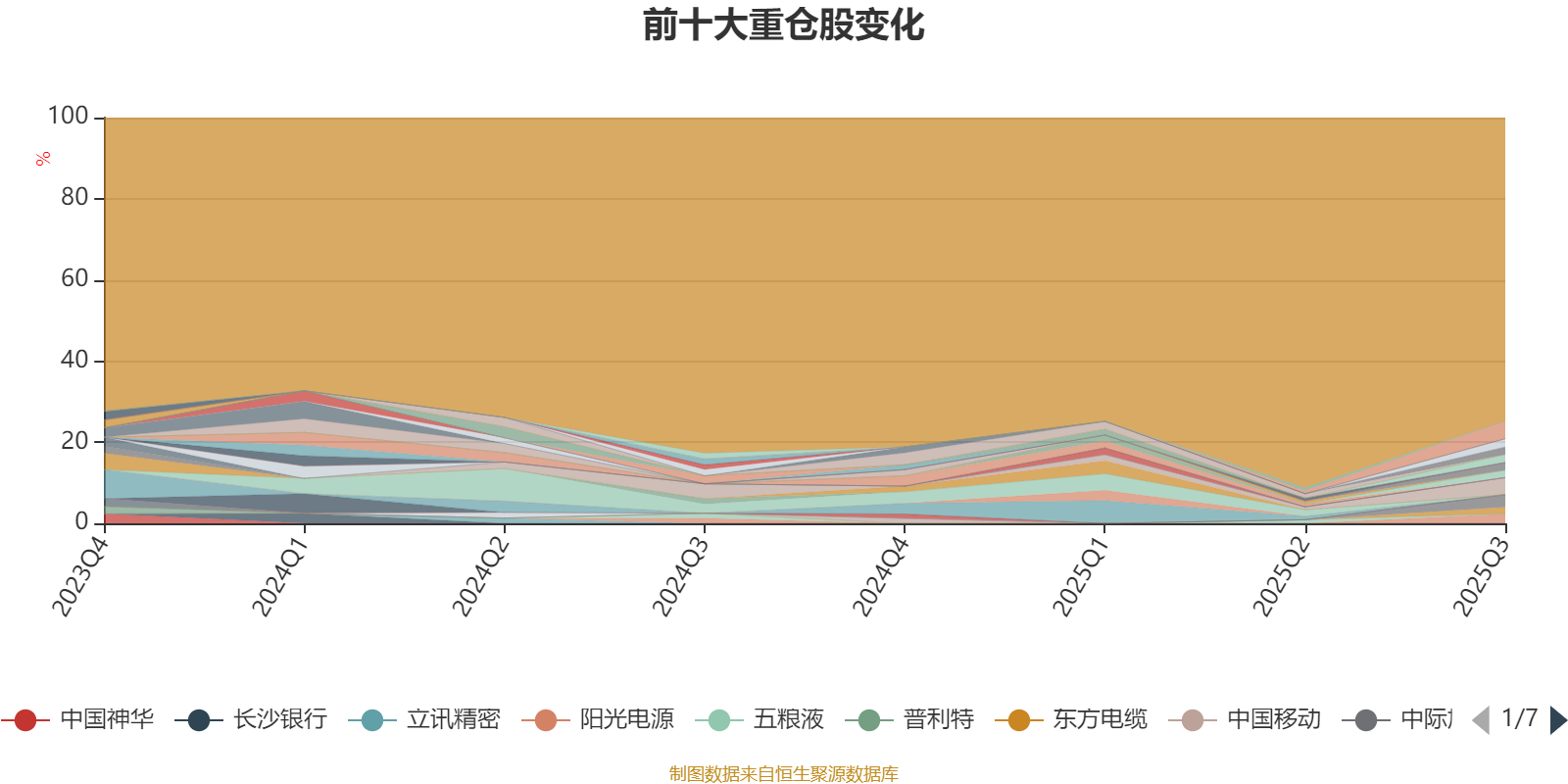 截至2025年三季度末,基金十大重仓股分别是新易盛、宁德时代、中际旭创、阳光电源、天孚通信、海光信息、寒武纪、汇川技术、胜宏科技、东方电缆。