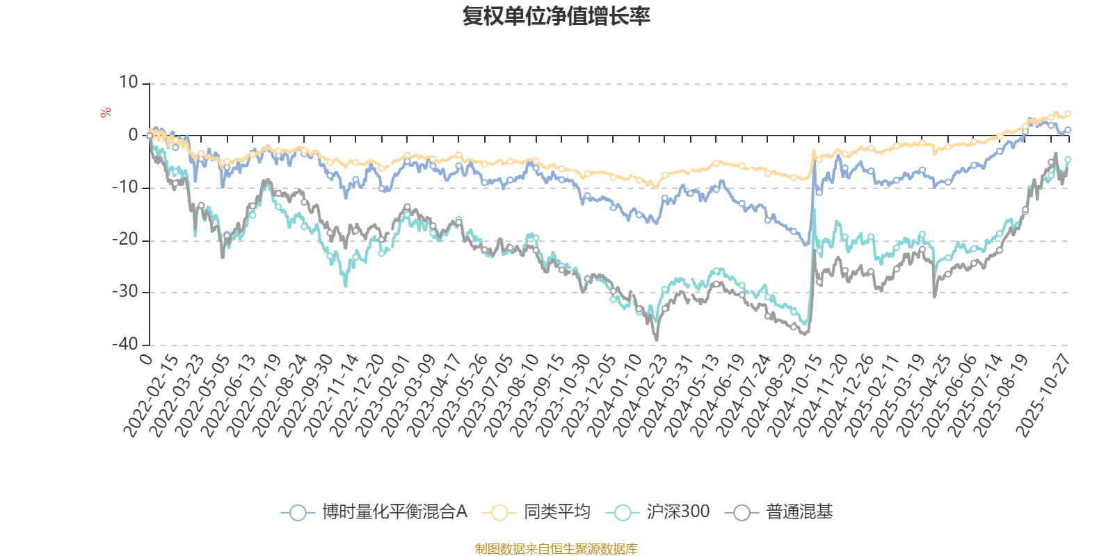截至10月27日,博时量化平衡混合A近三个月复权单位净值增长率为2.32%,位于同类可比基金337/629;近半年复权单位净值增长率为11.00%,位于同类可比基金74/629;近一年复权单位净值增长率为9.20%,位于同类可比基金188/623;近三年复权单位净值增长率为11.98%,位于同类可比基金256/557。