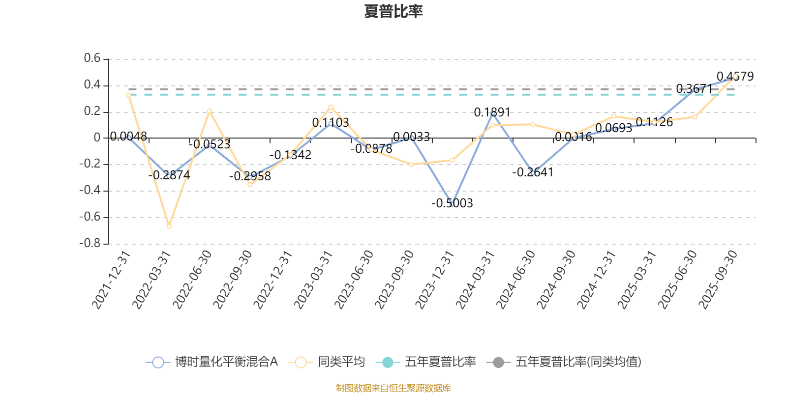 截至9月30日,基金近三年夏普比率为0.4358,位于同类可比基金393/553。