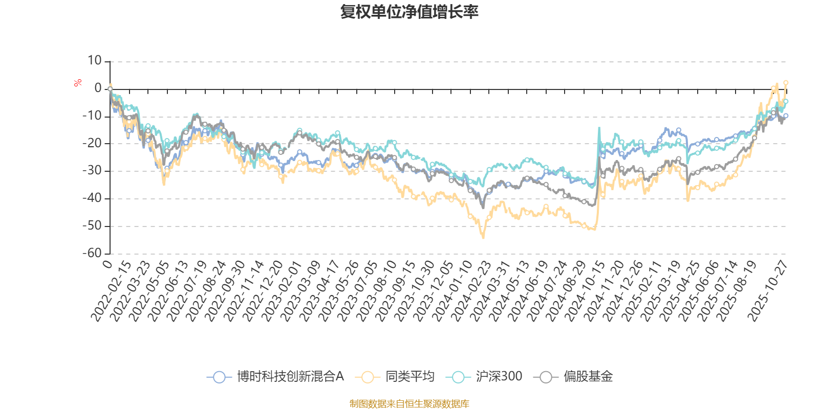 截至10月27日,博时科技创新混合A近三个月复权单位净值增长率为6.90%,位于同类可比基金221/229;近半年复权单位净值增长率为12.85%,位于同类可比基金224/229;近一年复权单位净值增长率为16.84%,位于同类可比基金206/213;近三年复权单位净值增长率为16.61%,位于同类可比基金133/158。