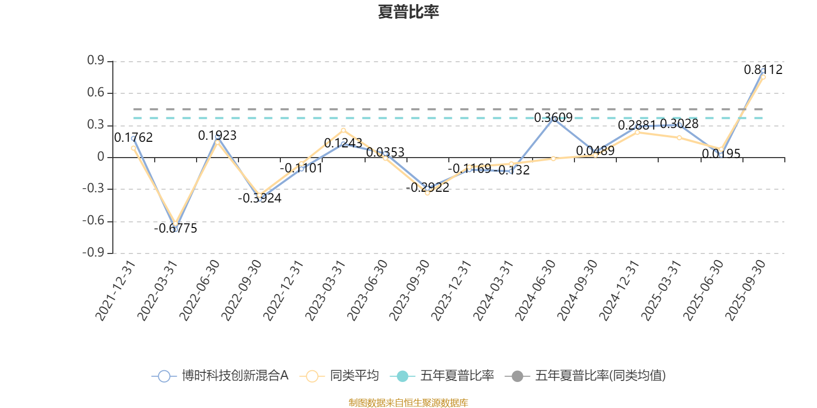 截至9月30日,基金近三年夏普比率为0.612,位于同类可比基金118/159。