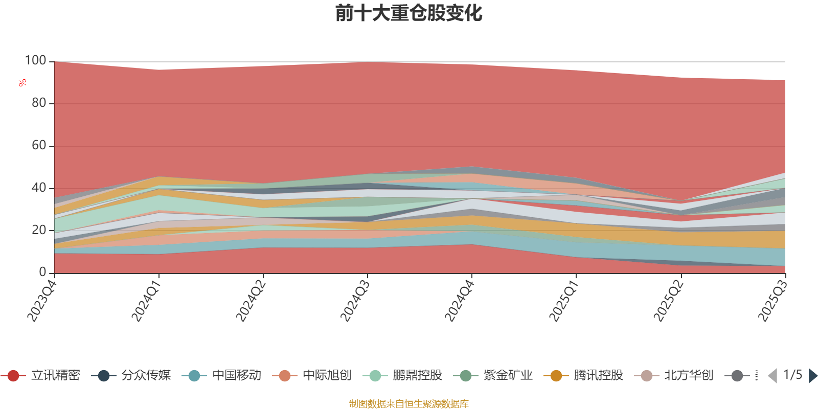 截至2025年三季度末,基金十大重仓股分别是腾讯控股、中国移动、宁德时代、中国电信、凤凰传媒、龙源电力、卓胜微、立讯精密、美的集团、中南传媒。