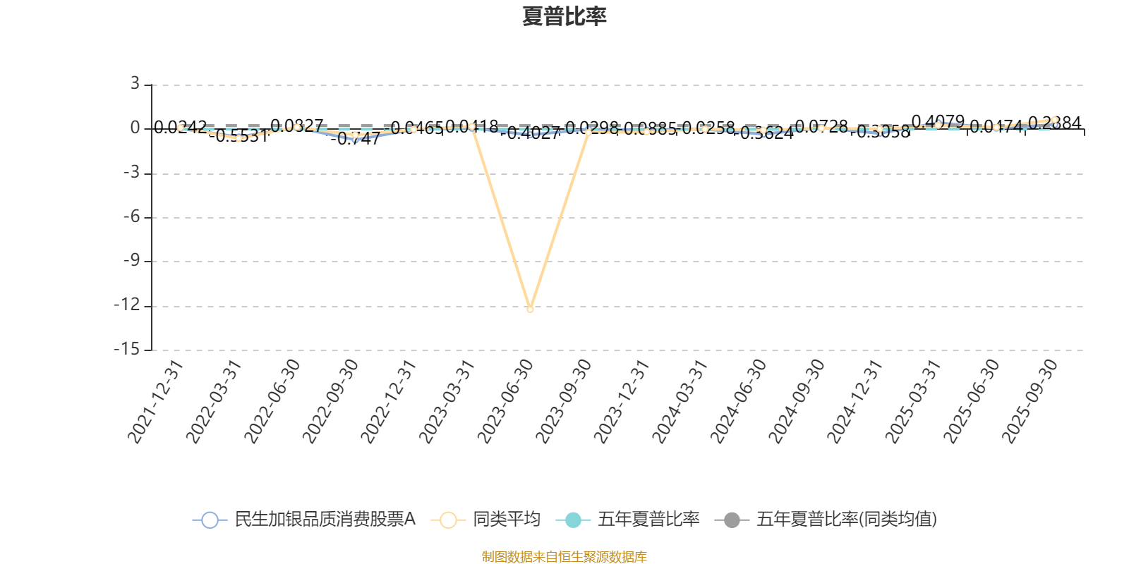 截至9月30日,基金近三年夏普比率为0.2112,位于同类可比基金71/85。