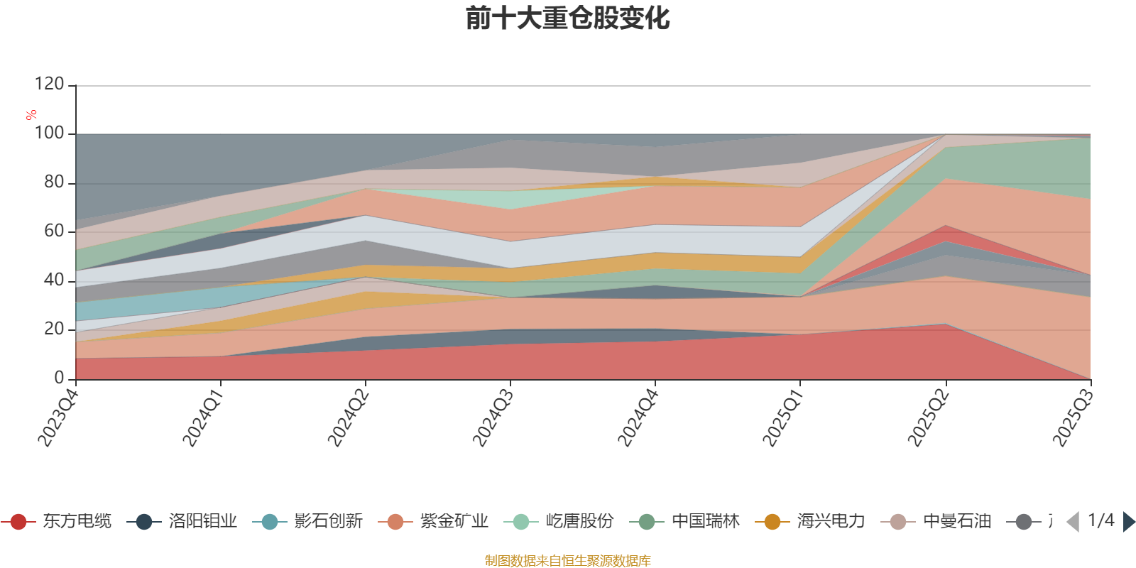 该基金持股集中度较高,近2年前十大重仓股集中度长期超过60%。截至2025年三季度末,基金十大重仓股分别是紫金矿业、汇成真空、藏格矿业、茂莱光学、圆通速递、华电新能、影石创新、屹唐股份、汉邦科技、中策橡胶。