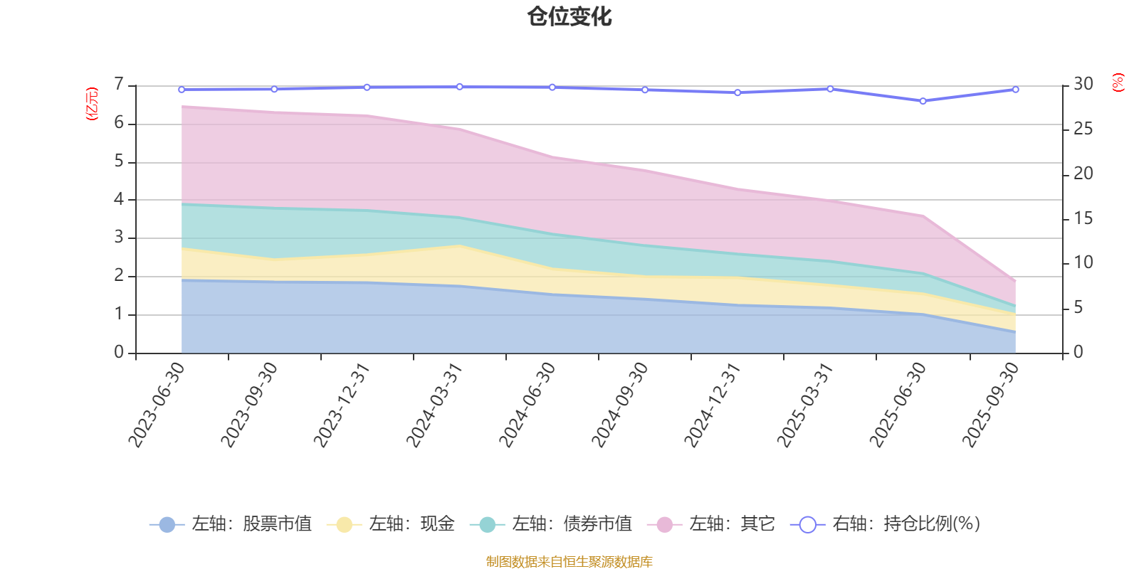 据定期报告数据统计,成立以来平均股票仓位为29.46%,同类平均为19.07%。2024年一季度末基金达到29.85%的最高仓位,2025年上半年末最低,为28.24%。