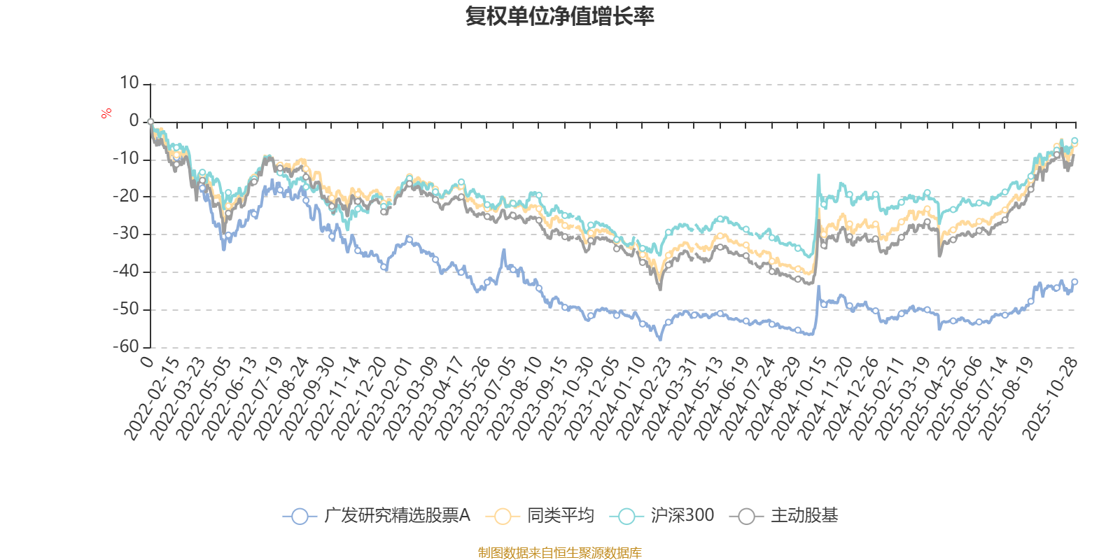 截至10月28日,广发研究精选股票A近三个月复权单位净值增长率为14.35%,位于同类可比基金92/167;近半年复权单位净值增长率为22.90%,位于同类可比基金117/166;近一年复权单位净值增长率为9.28%,位于同类可比基金145/164;近三年复权单位净值增长率为-12.81%,位于同类可比基金148/156。
