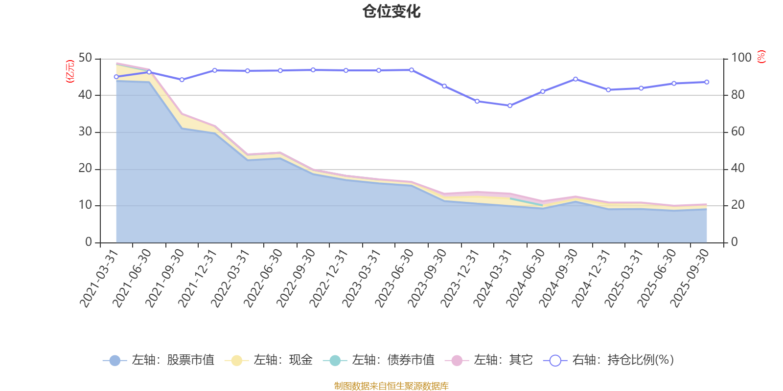 据定期报告数据统计,近三年平均股票仓位为85.79%,同类平均为88.27%。2022年三季度末基金达到93.91%的最高仓位,2024年一季度末最低,为74.47%。