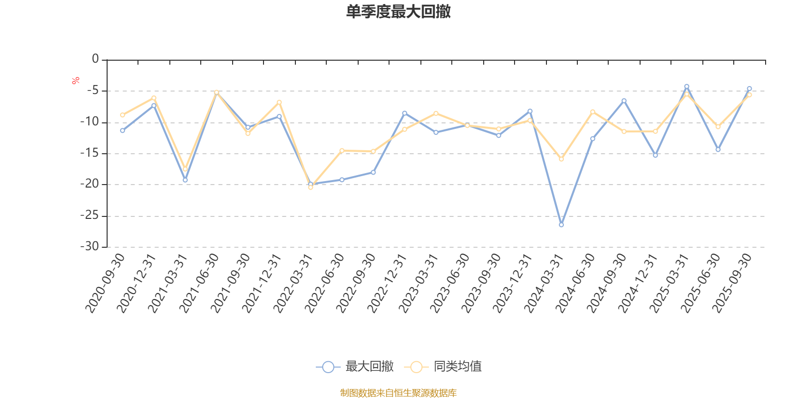 通过所选区间该基金净值增长率分位图,可以观察该基金与同类基金业绩比较情况。图为坐标原点到区间内某时点的净值增长率在同类基金中的分位数。