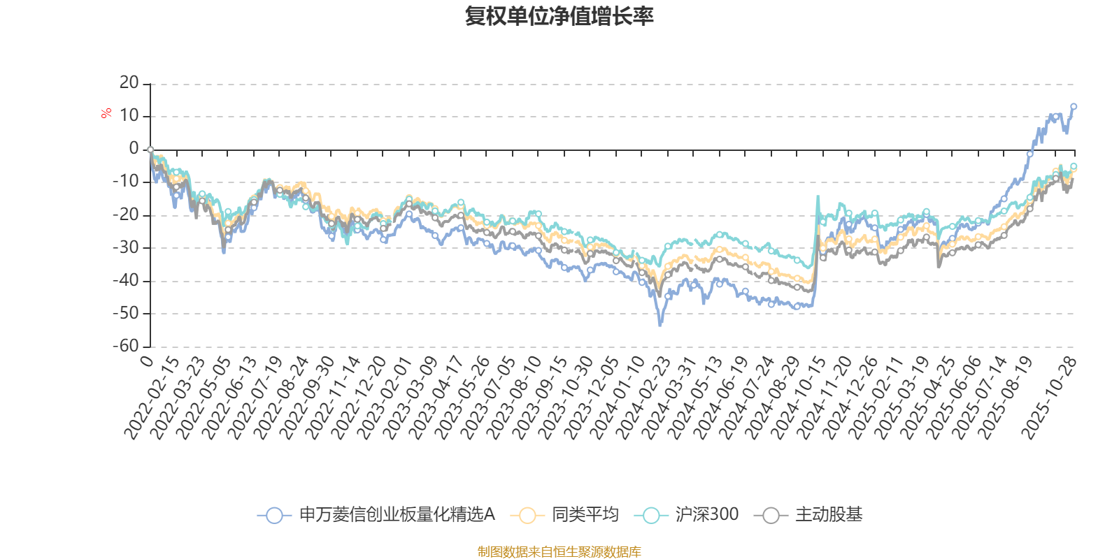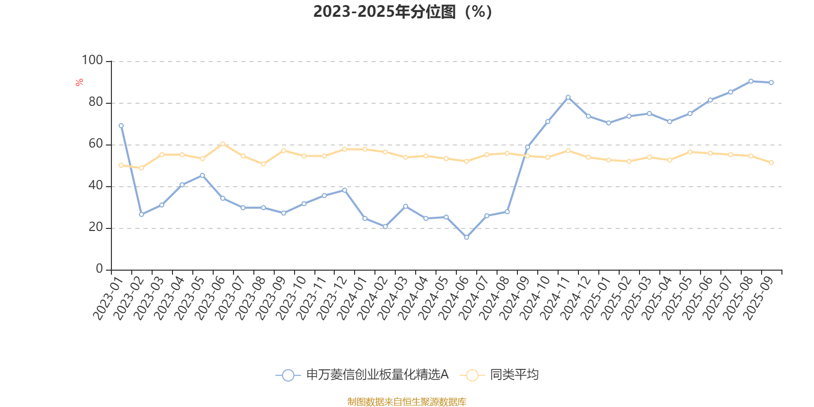 截至10月28日,申万菱信创业板量化精选A近三个月复权单位净值增长率为25.31%,位于同类可比基金33/167;近半年复权单位净值增长率为56.18%,位于同类可比基金15/166;近一年复权单位净值增长率为50.94%,位于同类可比基金16/164;近三年复权单位净值增长率为56.60%,位于同类可比基金25/156。