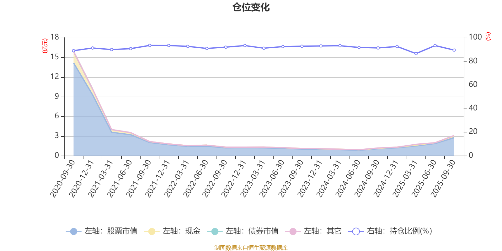 据定期报告数据统计,近三年平均股票仓位为91.7%,同类平均为88.27%。2021年三季度末基金达到93.44%的最高仓位,2025年一季度末最低,为86.5%。