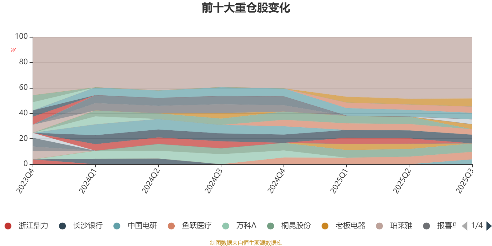 该基金持股集中度较高。截至2025年三季度末,基金十大重仓股分别是万华化学、桐昆股份、金地集团、鱼跃医疗、索菲亚、三一重工、晨光股份、欧派家居、密尔克卫、中国电研。