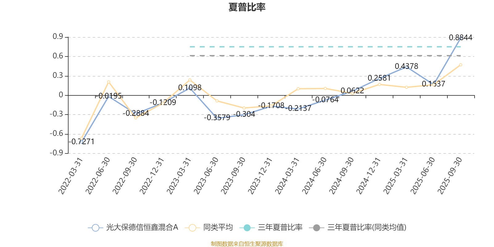 截至9月30日,基金近三年夏普比率为0.7492,位于同类可比基金208/553。