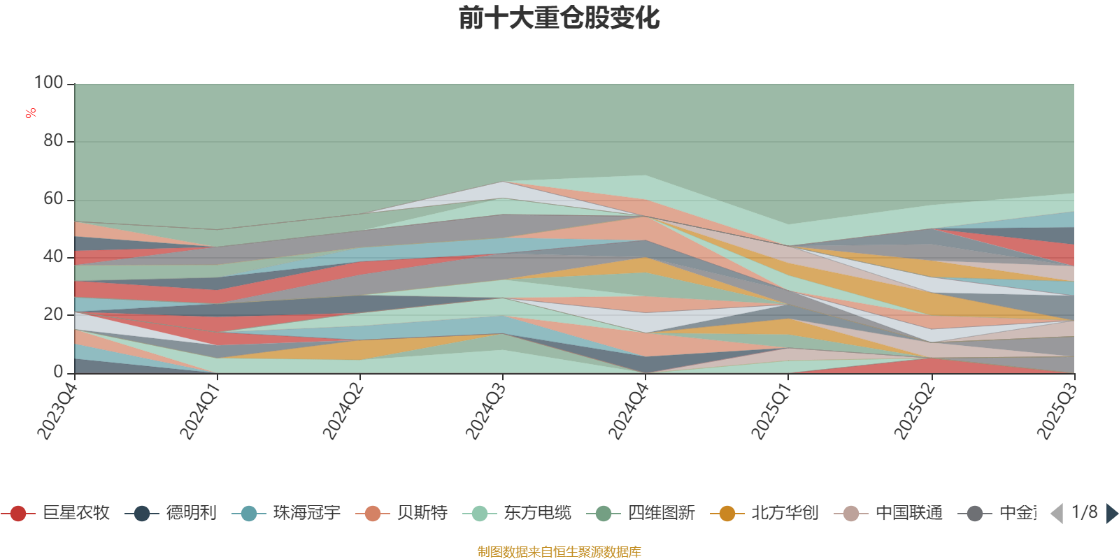 截至2025年三季度末,基金十大重仓股分别是新泉股份、华友钴业、铜陵有色、兆易创新、科博达、中金黄金、宁波华翔、恒力石化、华新水泥、巨化股份。