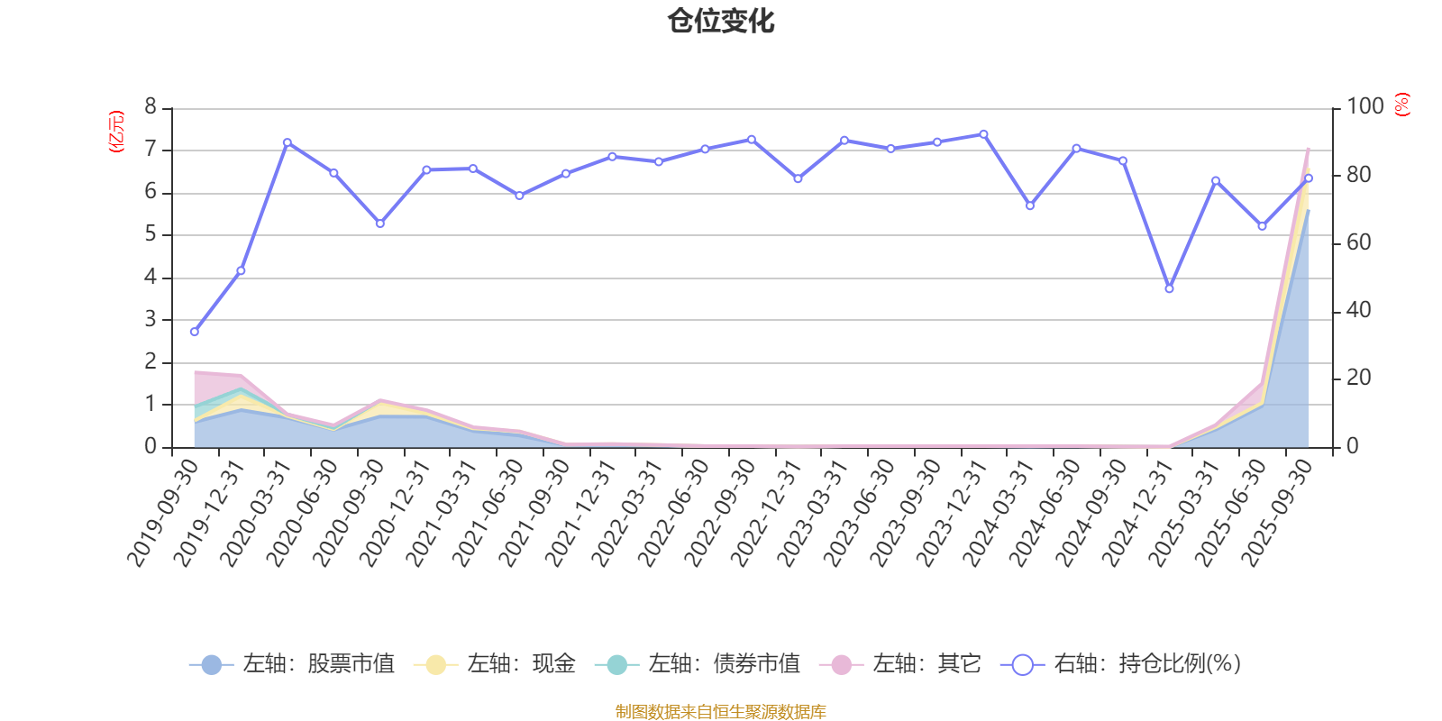 据定期报告数据统计,近三年平均股票仓位为79.51%,同类平均为72.35%。2023年末基金达到92.33%的最高仓位,2019年三季度末最低,为34.11%。