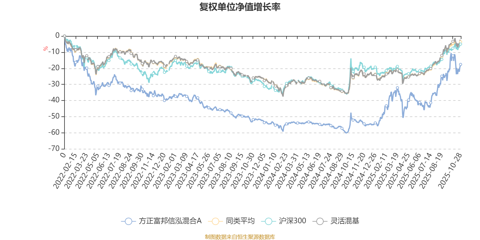 截至10月28日,方正富邦信泓混合A近三个月复权单位净值增长率为26.66%,位于同类可比基金215/1287;近半年复权单位净值增长率为39.14%,位于同类可比基金292/1287;近一年复权单位净值增长率为76.46%,位于同类可比基金47/1287;近三年复权单位净值增长率为32.02%,位于同类可比基金340/1286。
