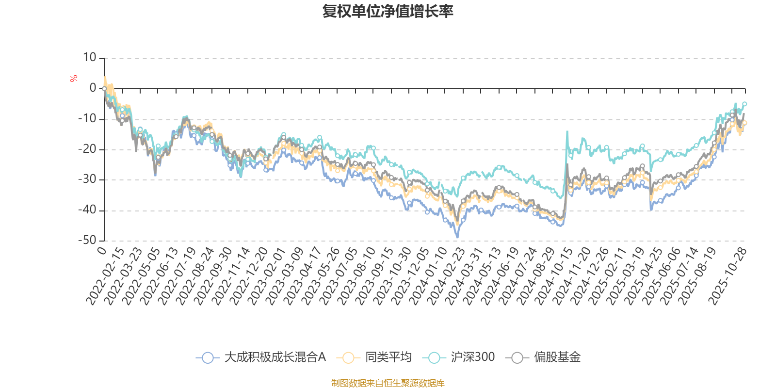 截至10月28日,大成积极成长混合A近三个月复权单位净值增长率为19.33%,位于同类可比基金89/265;近半年复权单位净值增长率为41.44%,位于同类可比基金62/265;近一年复权单位净值增长率为31.14%,位于同类可比基金105/265;近三年复权单位净值增长率为24.74%,位于同类可比基金111/253。