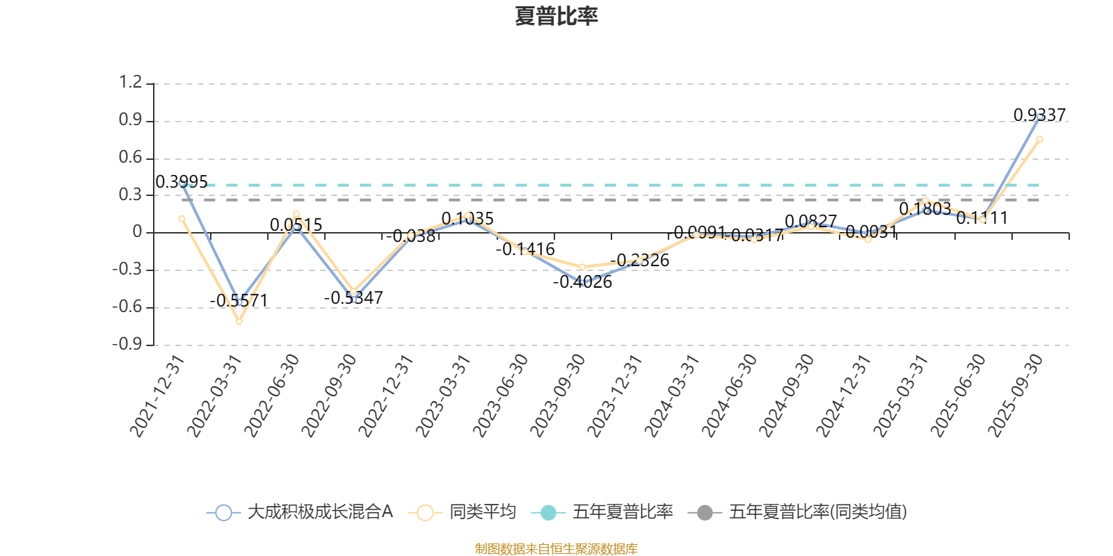 截至9月30日,基金近三年夏普比率为0.5966,位于同类可比基金111/252。