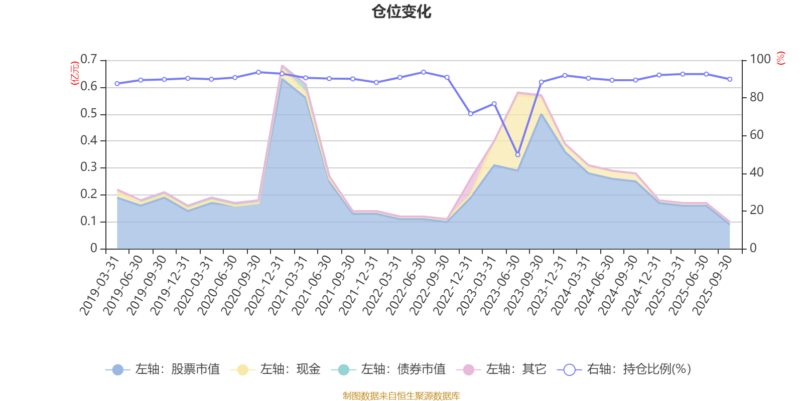 据定期报告数据统计,近三年平均股票仓位为84.61%,同类平均为88.23%。2022年上半年末基金达到93.66%的最高仓位,2023年上半年末最低,为49.92%。
