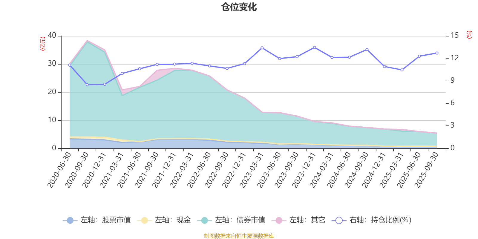 据定期报告数据统计,近三年平均股票仓位为12.18%,同类平均为19.14%。2023年末基金达到13.46%的最高仓位,2020年三季度末最低,为8.49%。