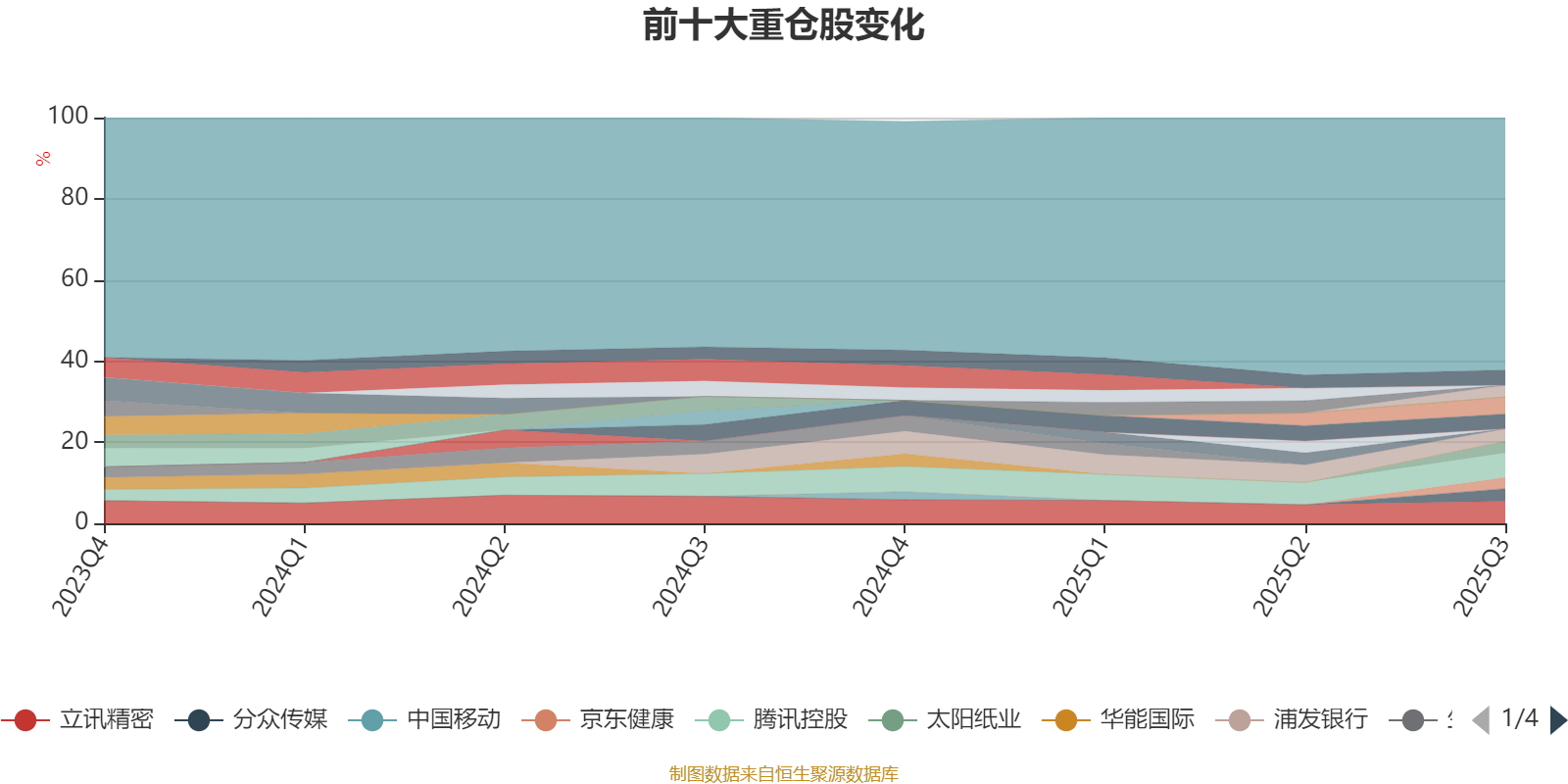 截至2025年三季度末,基金十大重仓股分别是腾讯控股、立讯精密、信达生物、华鲁恒升、安踏体育、分众传媒、浦发银行、太阳纸业、瀚蓝环境、京东健康。