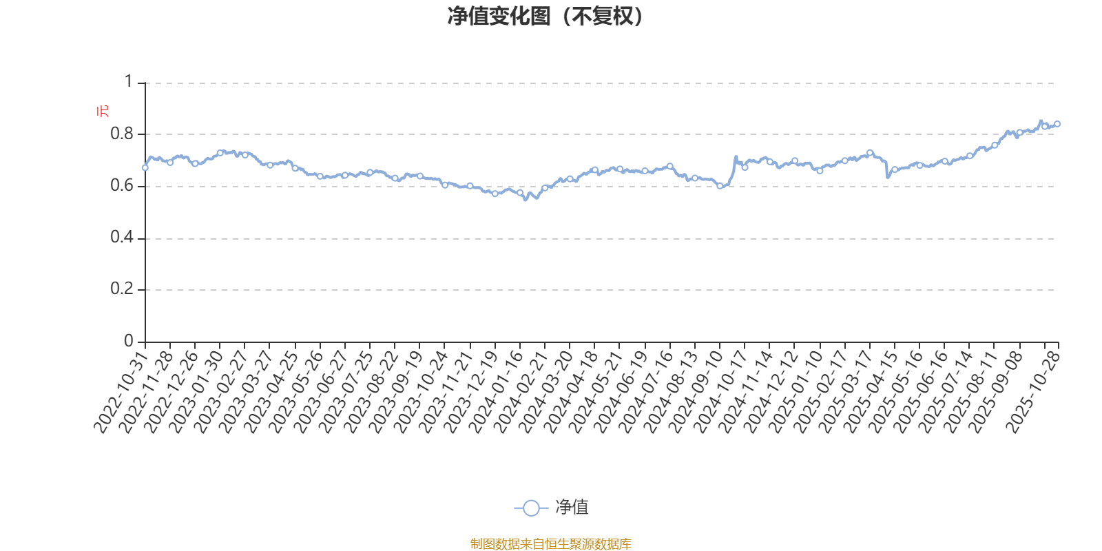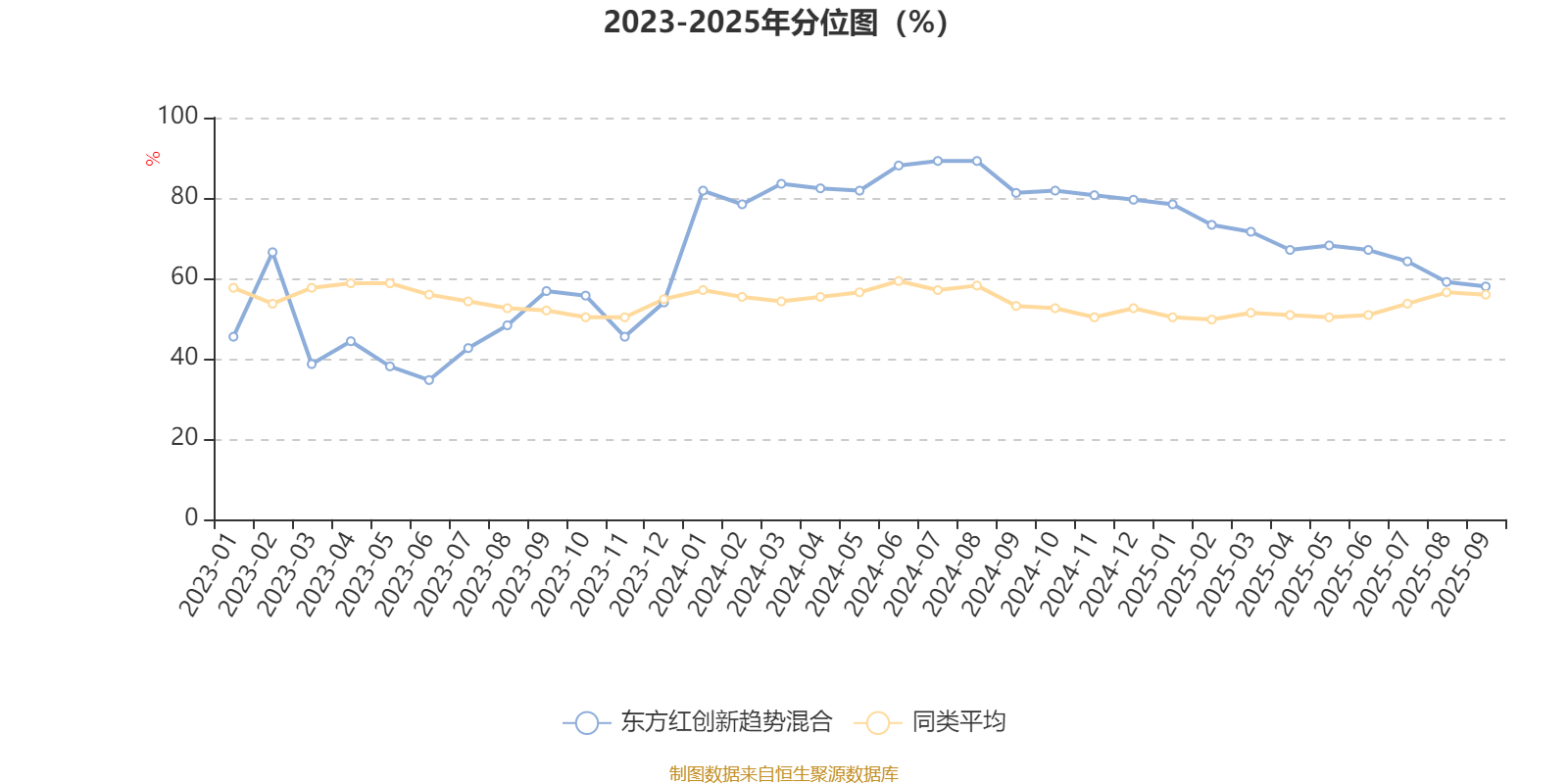 通过所选区间该基金净值增长率分位图,可以观察该基金与同类基金业绩比较情况。图为坐标原点到区间内某时点的净值增长率在同类基金中的分位数。