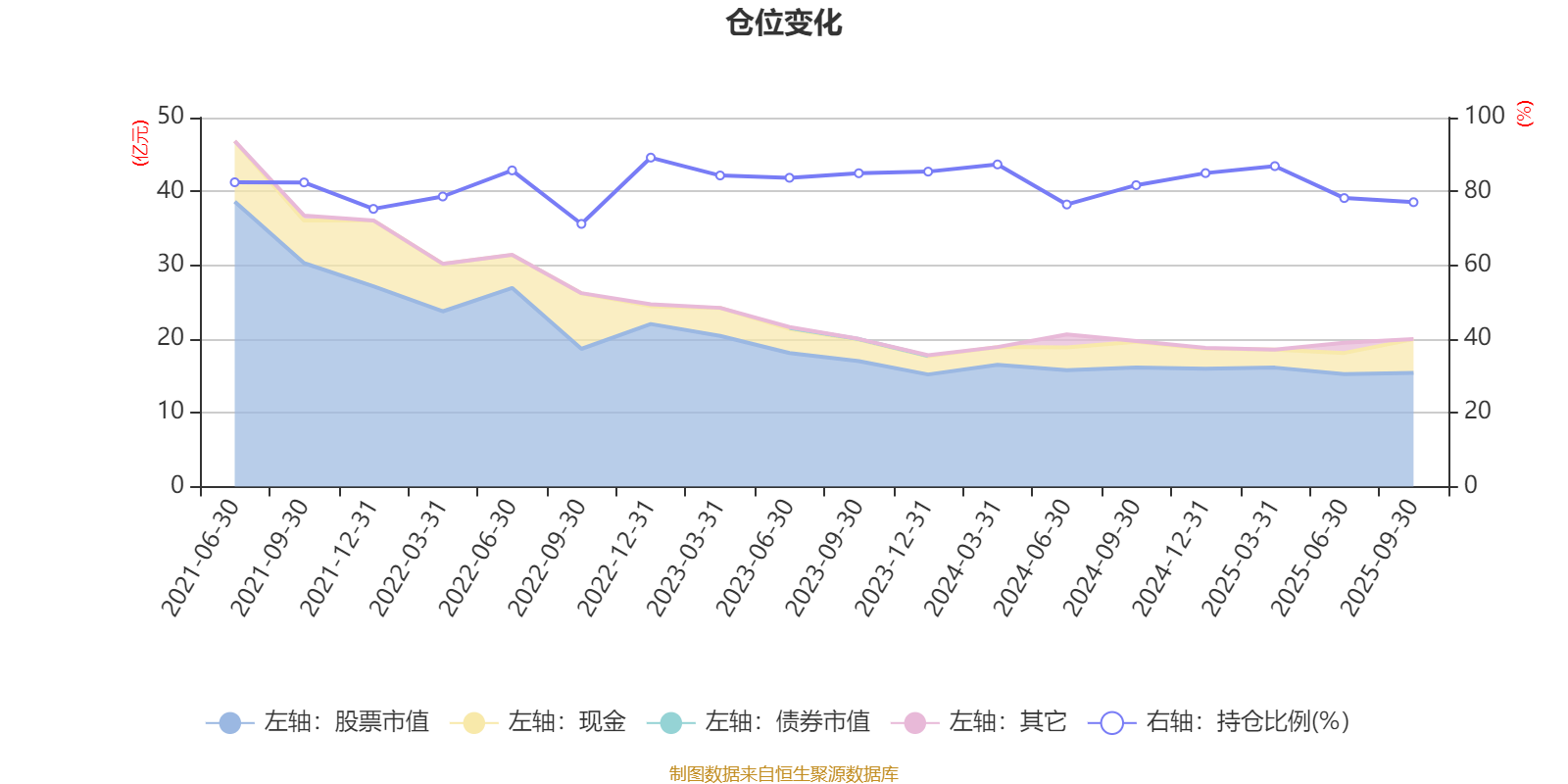 据定期报告数据统计,近三年平均股票仓位为83.33%,同类平均为87.62%。2022年末基金达到89.16%的最高仓位,2022年三季度末最低,为71.19%。
